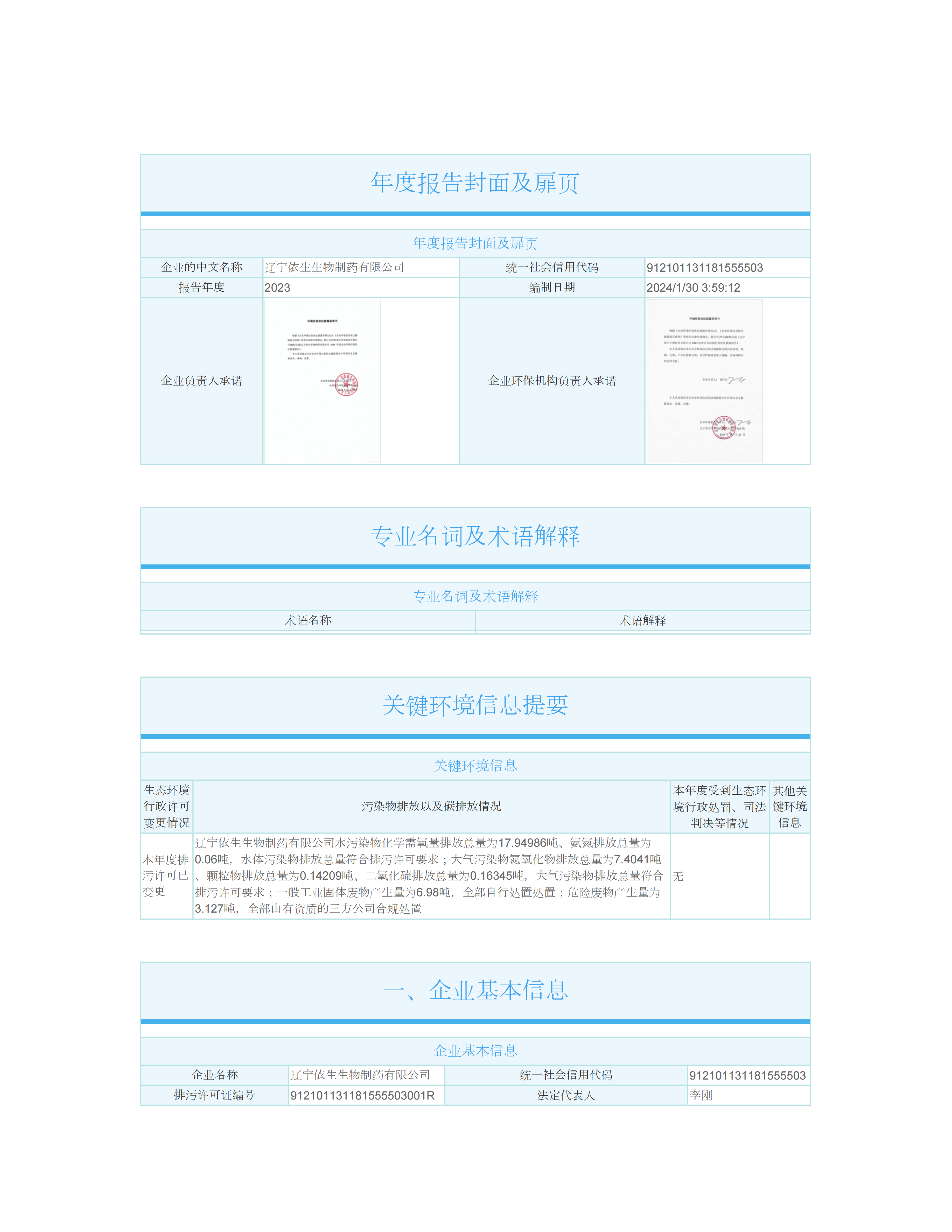 2023年度辽宁意昂体育生物环境信息依法披露年报